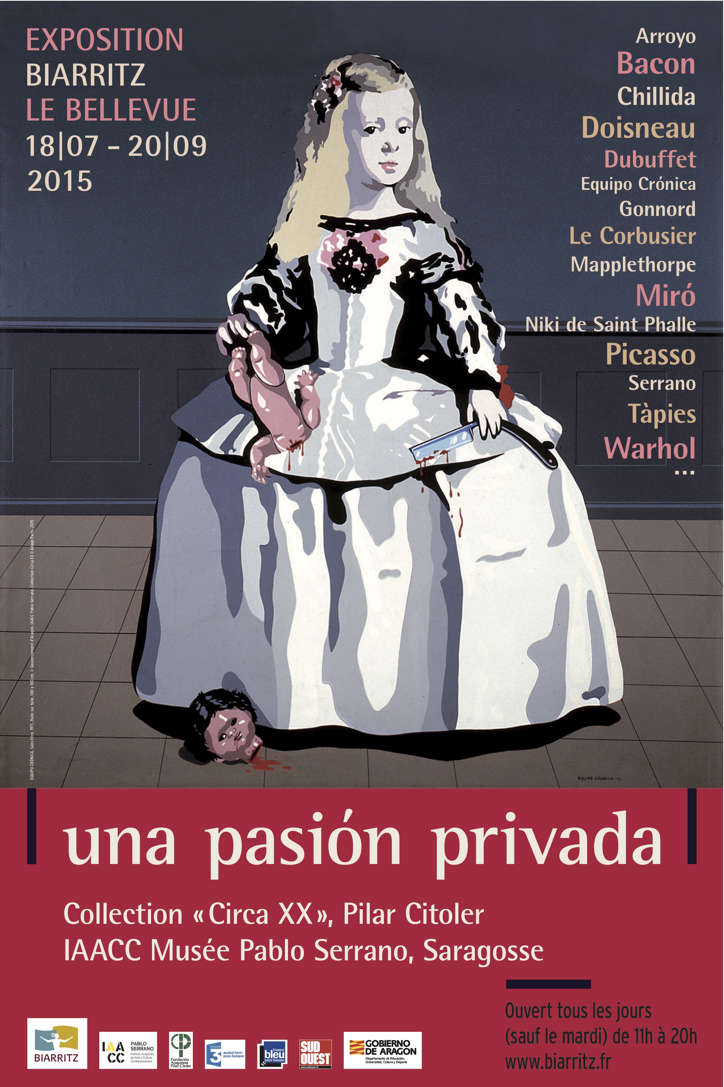 – Del 18 de julio al 20 de septiembre, en el espacio museístico Le Bellevue de Biarritz, una selección de obras multidisciplinares: pintura, dibujo, grabados, esculturas, instalaciones, fotografías y vídeos de artistas como Bacon, Chillida, Gonnord, Le Corbusier, Miró, Picasso y Warhol, entre otros.