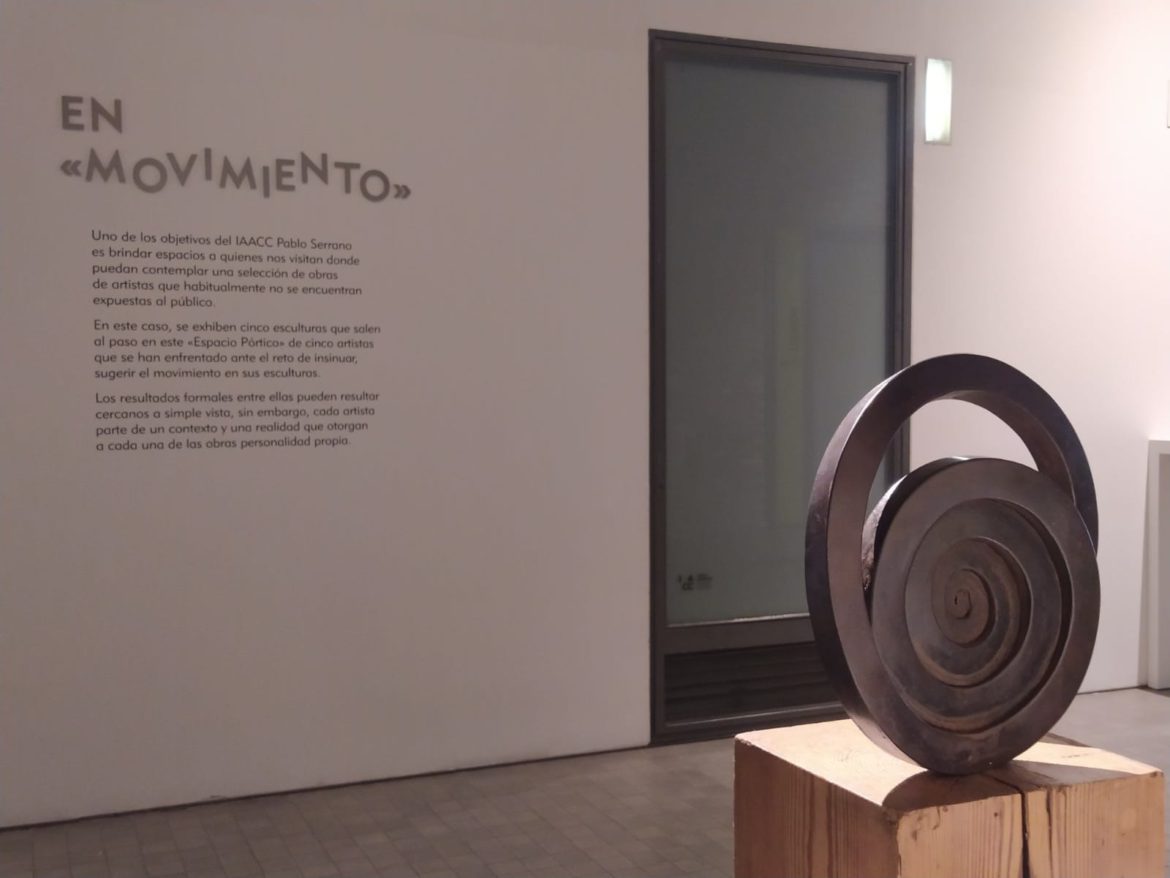 En este caso, se exhiben cinco esculturas que salen al paso en el “Espacio Pórtico” de cinco artistas que se han enfrentado ante el reto de insinuar, sugerir el movimiento en sus esculturas.
