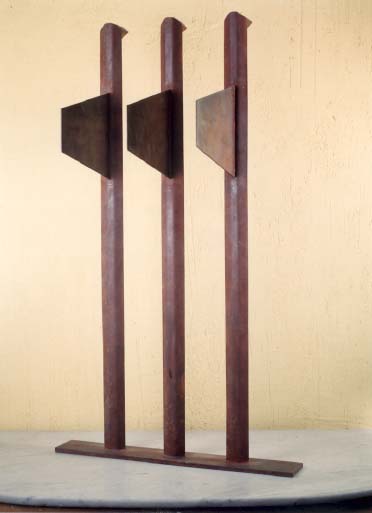 Jorge Arxé: Atalaya vigilante (1985). Acero cortén (219 x 35 x 14 cm) (sobre base o pletina de 0,6 x 40 x 25 cm)