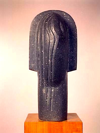 Sebastián Solar: Sin título (“Cabeza”) (1990). Piedra azul de San Cristóbal (cantera chilena) (28 x 12 x 28 cm), obre base de madera (de 25 x 14,3 x 14.6 cm)